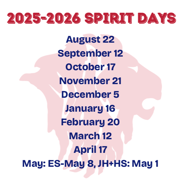 All guidelines related to hats, hair, jewelry, footwear, skirt length and winter wear will remain in effect.  Failure to follow guidelines may result in forfeiture of future participation in Spirit Day privileges.