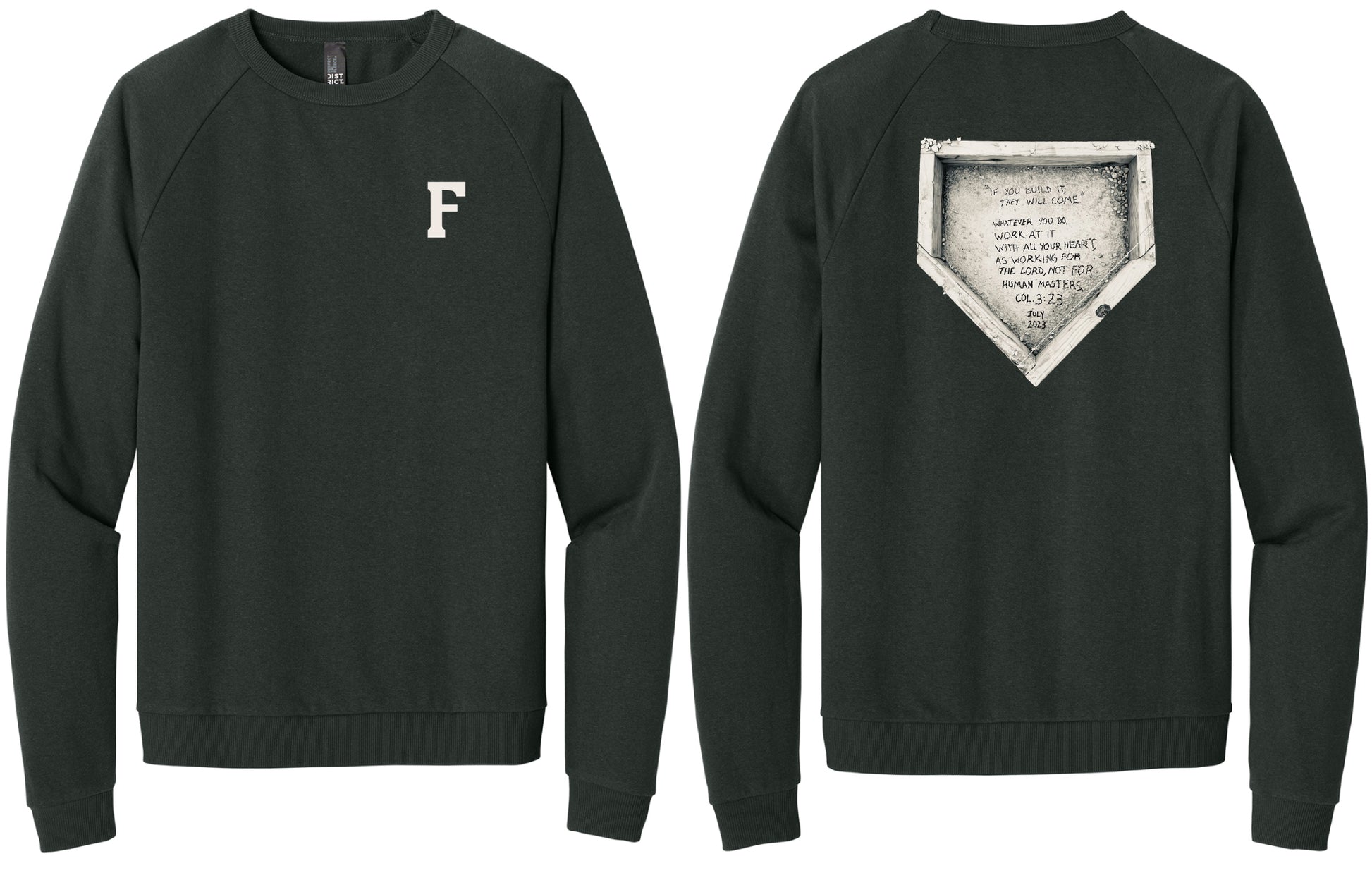 We love this special sweatshirt featuring our scripture carved into the concrete that lies beneath home plate on the Faith Baseball Field!