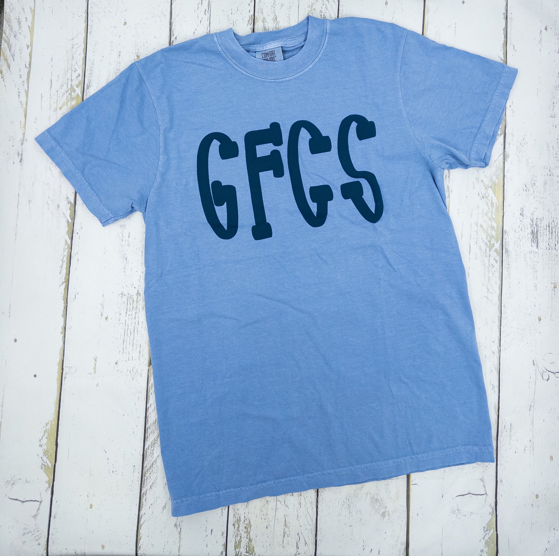 Get ready to show off your playful side with the GFCS Puff Print Tee! This unique Comfort Colors washed denim shirt features a trendy puff print technique, perfect for spirit day and game days. Get ready to rock your style and have some fun in this cute Tee. Available in adult sizes.