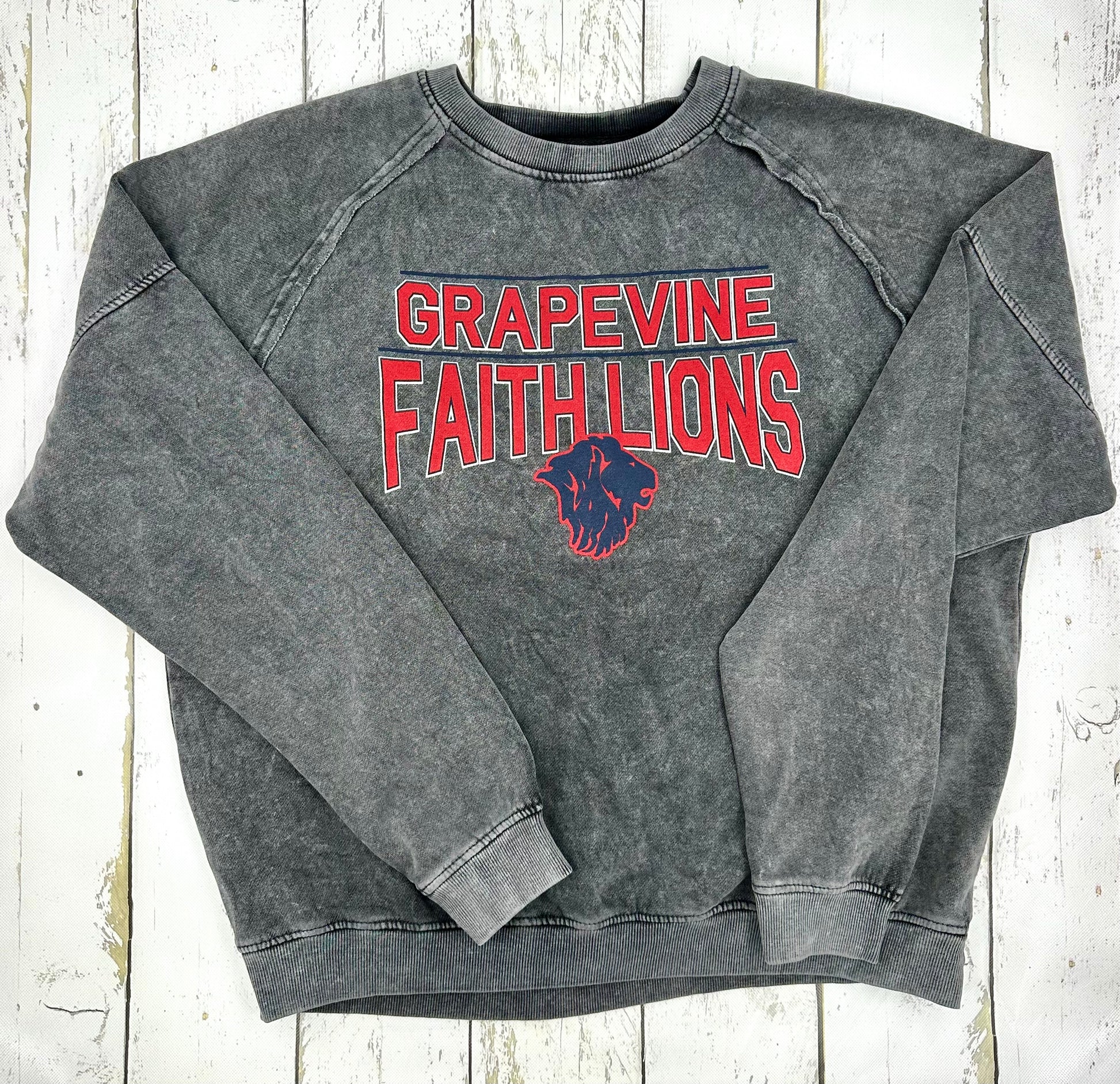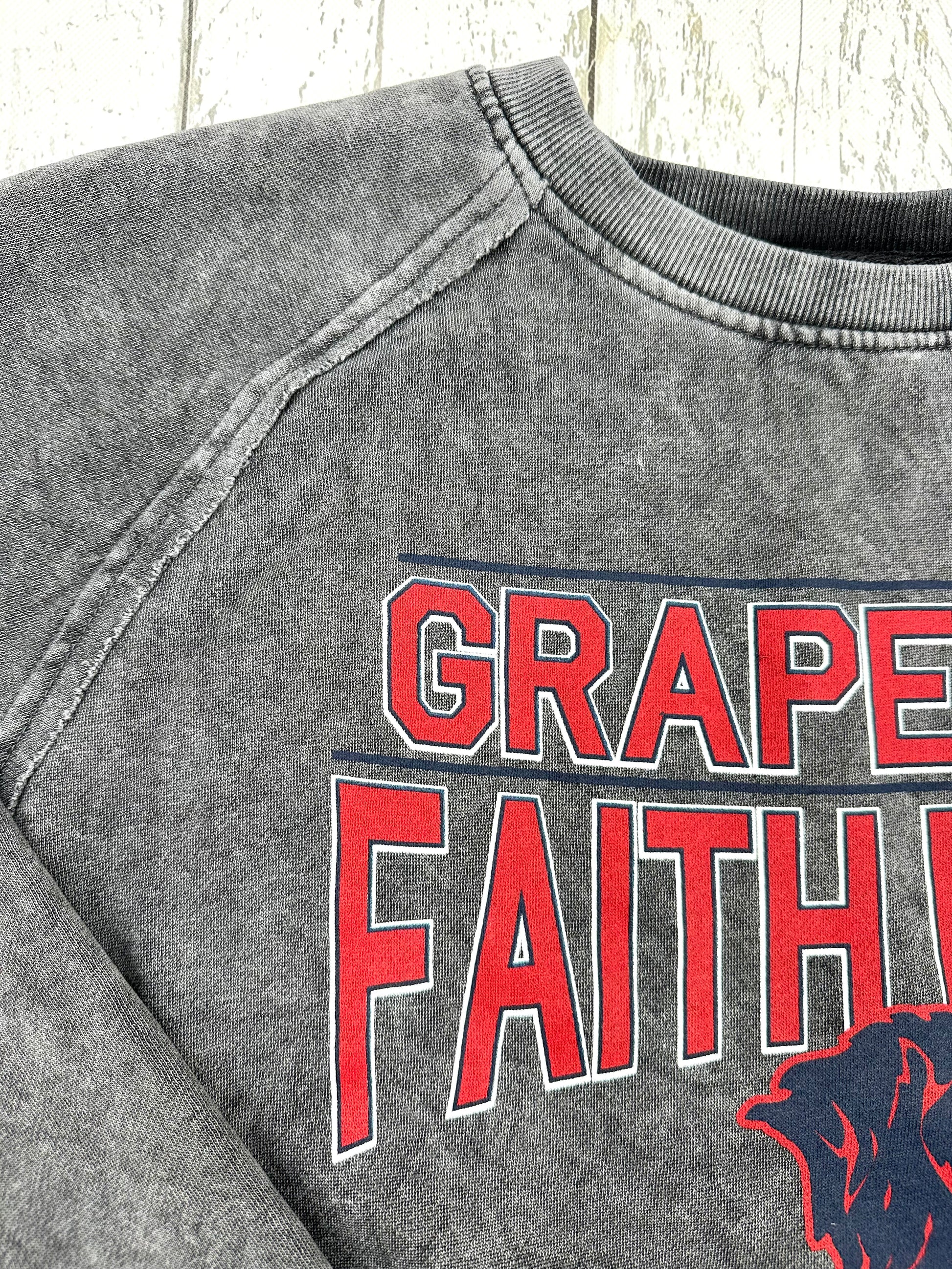 Wrap yourself in warmth with the Grapevine Faith Cape Cod Crew sweatshirt, featuring trendy unfinished edge raglan sleeves and a soft washed grey finish. Perfect for staying cozy through the season while showing your pride for the lions. This playful crew neck combines comfort with team spirit, making it your go-to layer for game days and everyday adventures. Snuggle up and rep your pride!