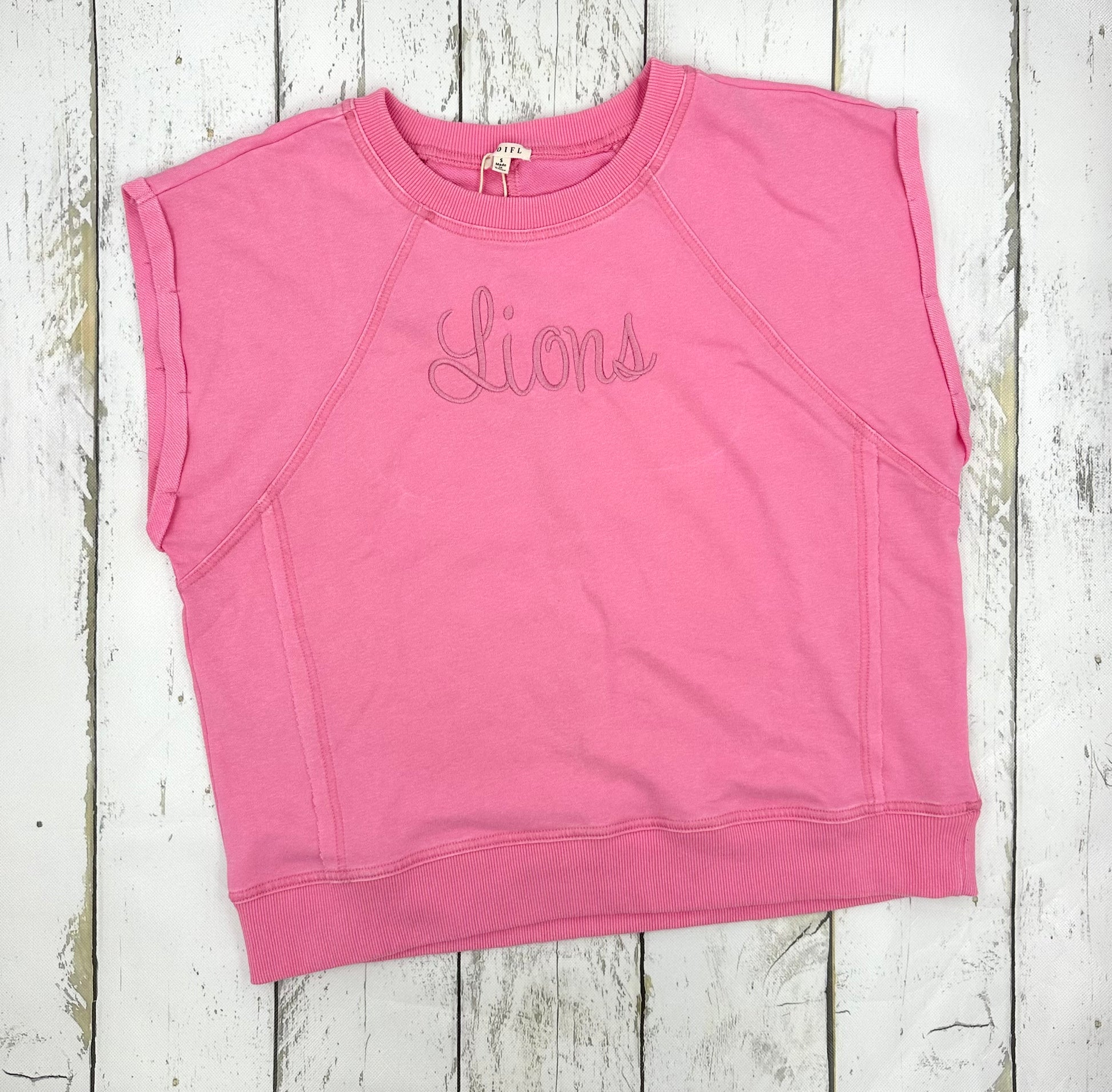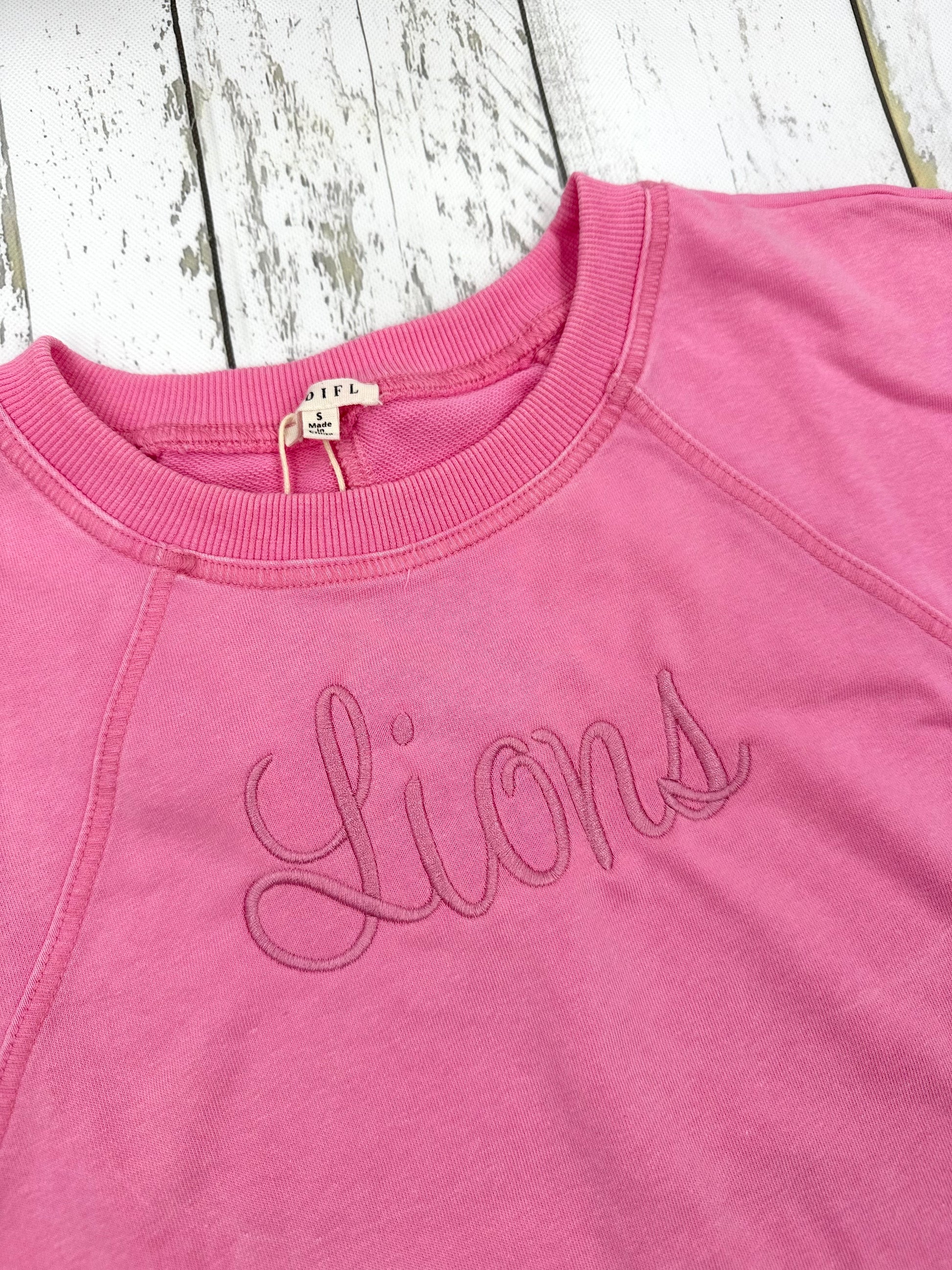 Celebrate your lion spirit with our breezy cap sleeve cotton top. Featuring embroidered lions, this cute pink tee lets you cheer on our lions with fun and flair!