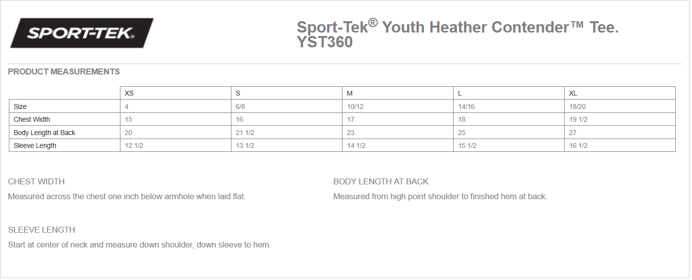 See Product Measurement Charts for sizing (youth and adult)